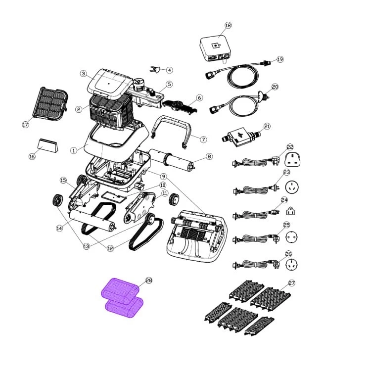 AQT Poolcleaner zijkant links voor het bevestigen van de aandrijfas, het aandrijfwiel en de bodem plaats van de AQT zwembadrobot.