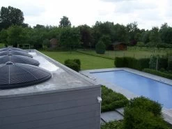 - Een zwembad met solar lamellen : 2 collectoren