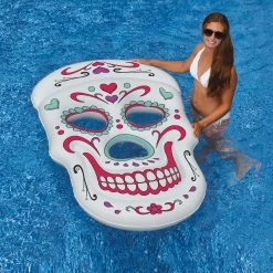 Grote drijvende matras met Mexicaanse versiering. Afmetingen 157 x 101 x 25 cm. Leuk hebbeding om te zonnen in het zwembad.