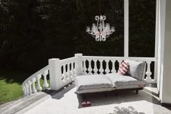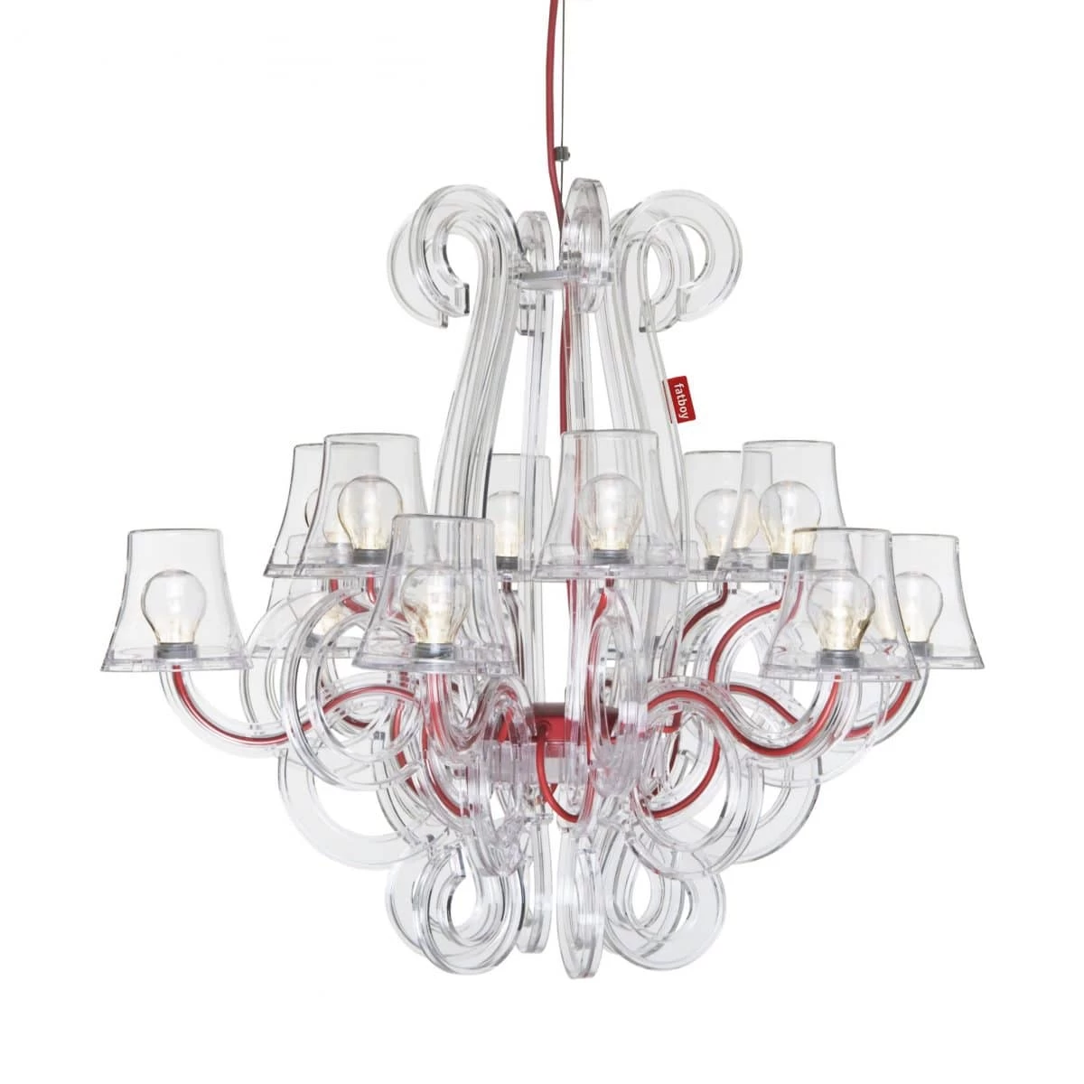 De Fatboy Rockcoco kroonluchter is ontworpen voor de Nederlandse designtalenten DeMakersVan. Zij creëerden een delicate, transparante hanglamp met een 7 meter lange iconische rode bedrading, speciaal voor buiten. Deze strookt perfect met de overdadige uitspattingen van Lodewijk XV’s heerschappij. Maar laat je dus zeker niet misleiden door het uiterlijk, want deze Rockcoco van Fatboy is niet alleen frivool en majestueus modern, het is de allereerste weersbestendige kroonluchter voor buiten.