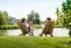 De levensduur van deze houten klapstoel kan je verlengen door hem jaarlijks te behandelen met transparante olie en hem samen te vouwen en op te bergen in het poolhouse of tuinhuis.