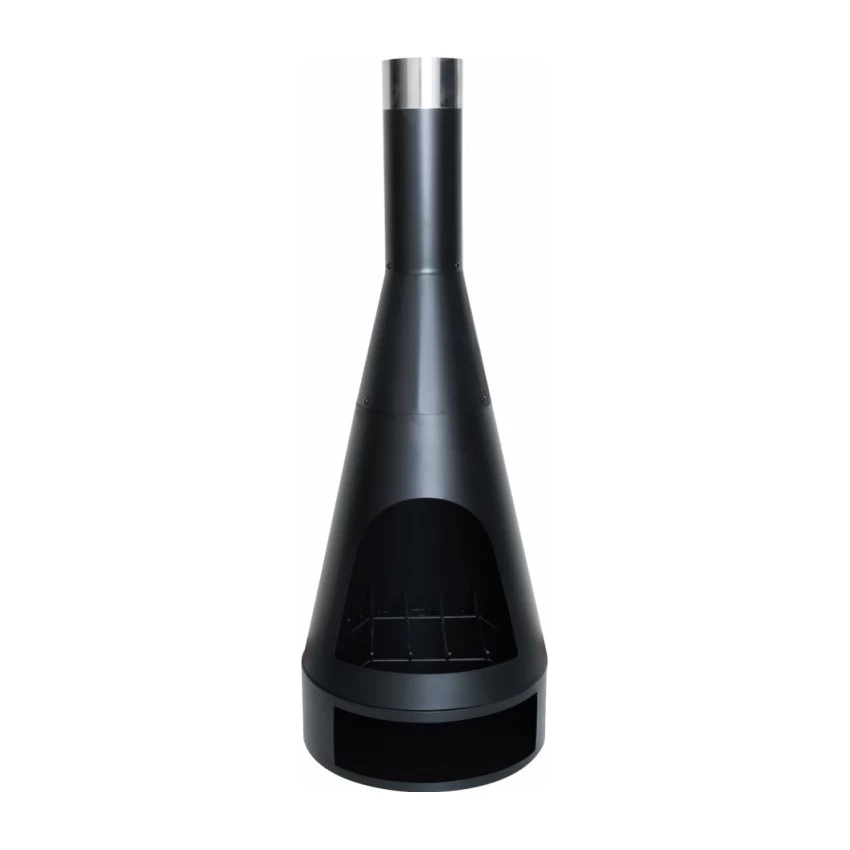 Design houtkachel kingston voor in de tuin of op het terras. De hoogte van deze kachel met hout is 160cm en is onderaan voorzien van een kleine houtopslag.