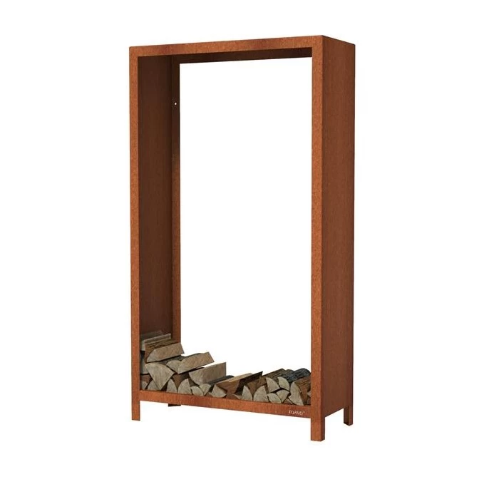 De hout bergingen worden vervaardigd uit 3mm Corten Staal van de beste kwaliteit. De roest bruine berging voor het brandhout heeft ongeveer 4 – 5 maanden nodig om mooi egaal te roesten. Je kan een roestversneller gebruiken om de sneller te laten verlopen. Onze houtopslag in roest staal worden dus ongeroest geleverd, de weersinvloeden zetten het proces op gang en doen dan hun werk om de roestlaag te creëren.