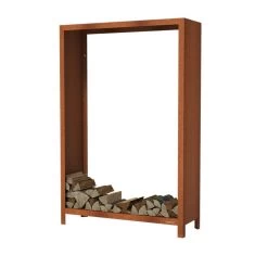 Onze cortenstaal houtopslag muurbevestiging van 1.8m hoog is beschikbaar in roest of in zwarte poedercoating. De houtopslag is verkrijgbaar met een breedte van 80 tot 150cm.