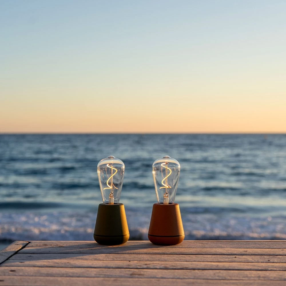 De design tafellampen voor buiten van Humble zijn gemaakt in 4 aarde tint kleuren.