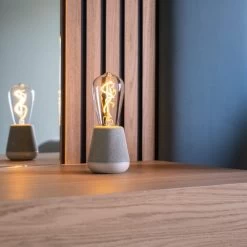 Zoals de andere Humble design lampen zijn ook deze reeks lampen gekenmerkt door de centraal geplaatste LED lamp. Deze lamp is een retro look lamp met standaard E27 schroefdraad. De LED lamp geeft licht als een ouderwetse gloeilamp. De LED lamp is vervangbaar en energie zuinig.