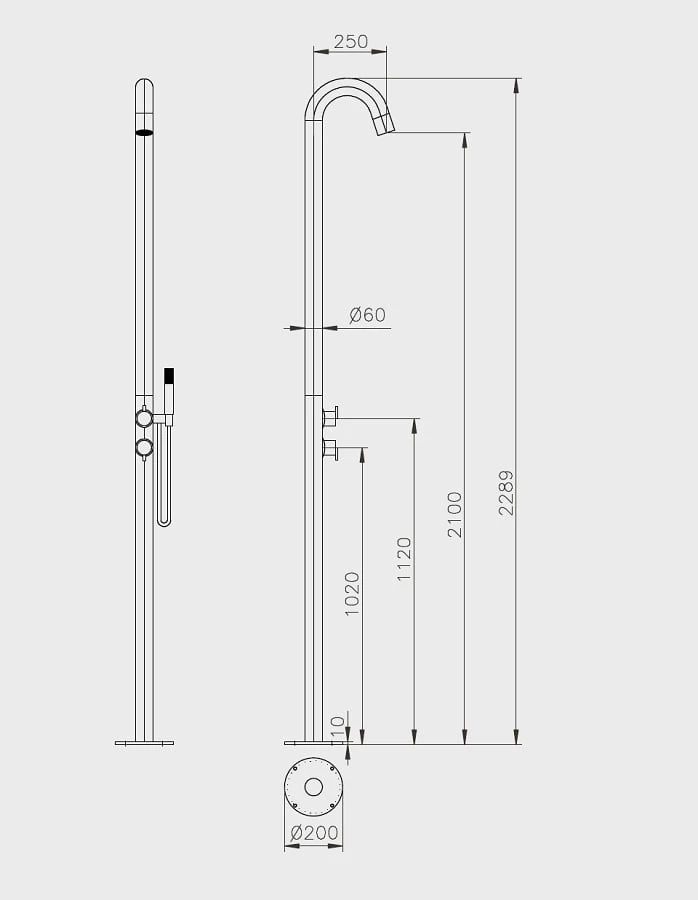 Deze buitendouche hebben we ook in ons assortiment als Zwarte buitendouche. Het verschil is de afwezigheid van de voet sproeier op deze RVS douche. De zwarte douche heeft wel een voetsproeier.
