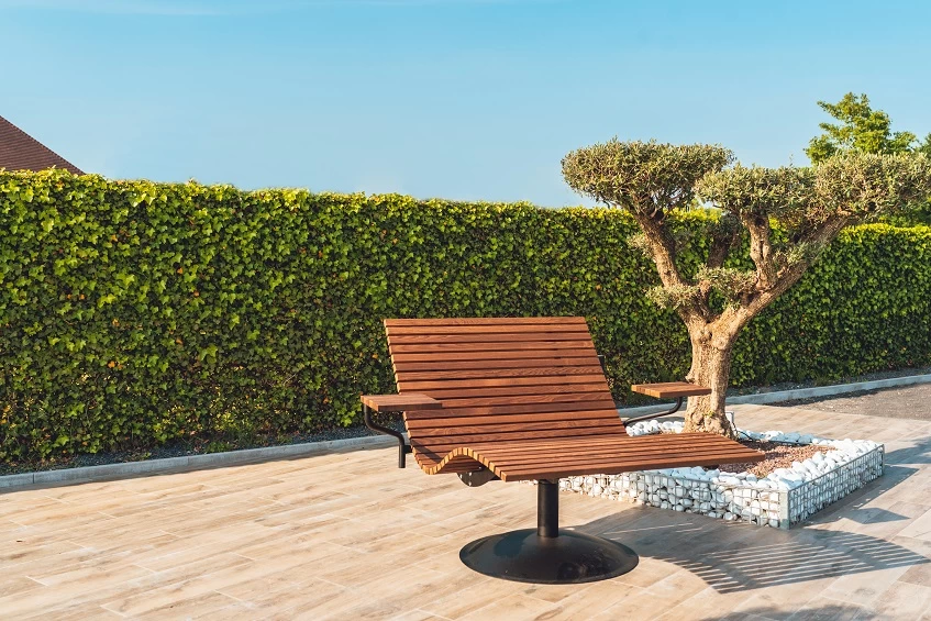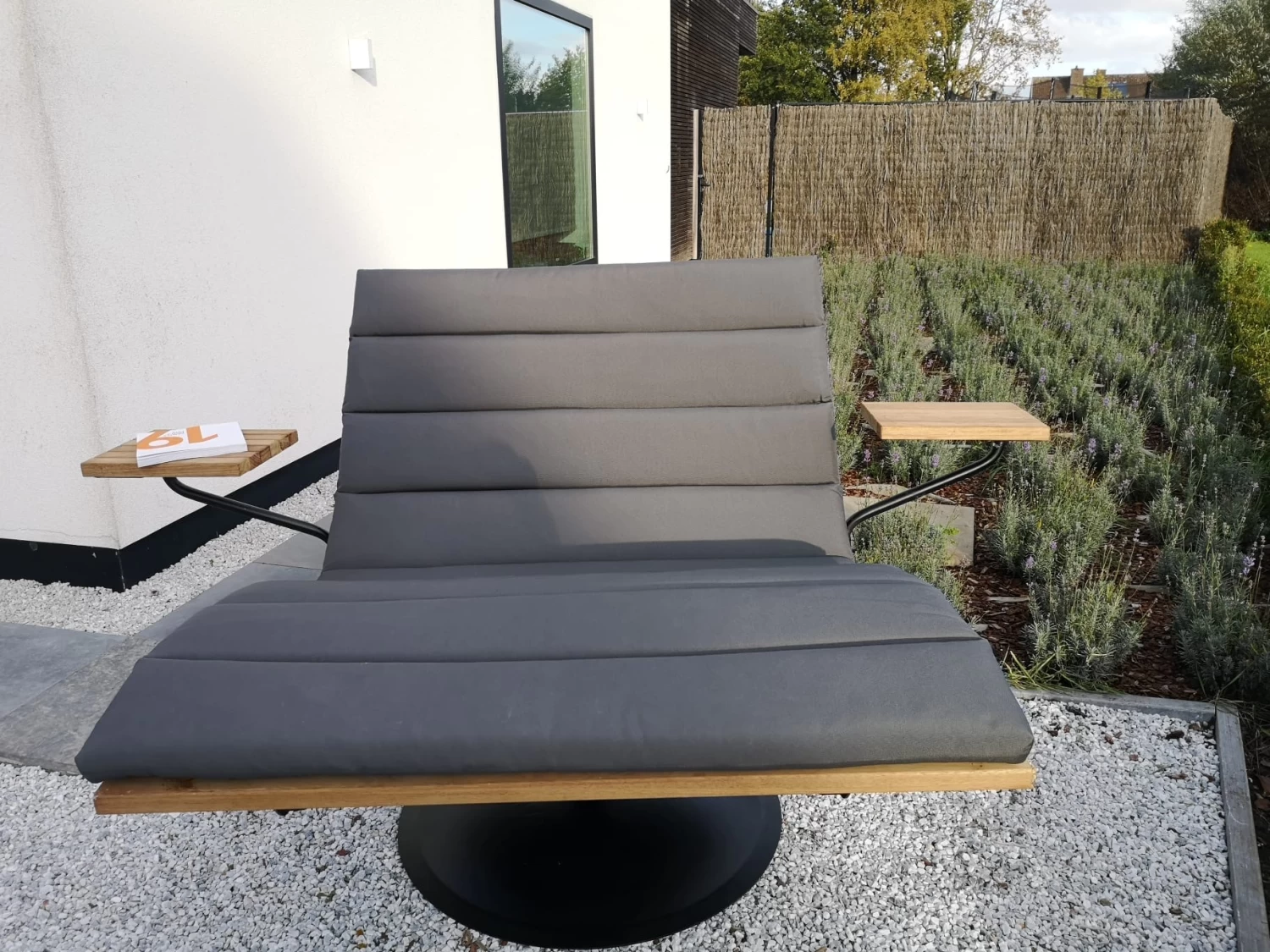 - materiaal loungezetel : Thermowood gerook Essen hout (onderhoudsvriendelijk en superlicht)