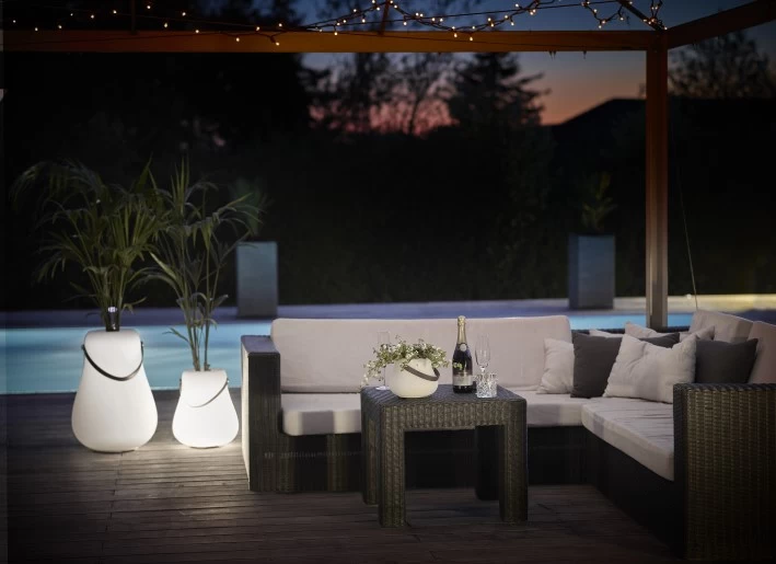 De Nordic D’Luxx is gemaakt van zeer stevig en resistent LLDPE (Polyethyleen). Dit materiaal is weer resistent en u kan de lamp bloem pot dus zowel binnen als buiten gebruiken op terras, een balkon of binnen in de woning. Het materiaal van de LED met luidspreker, weerstaat temperaturen tot -20°C, u kan hem dus eveneens gebruiken als ijsemmer of als wijnkoeler.