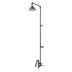 Mora Garden buitendouche met wandmontage en met een industriële look en feel. Inclusief voet kraan. Douche voor montage tegen een wand. Zwarte tuindouche inclusief montage stukken.