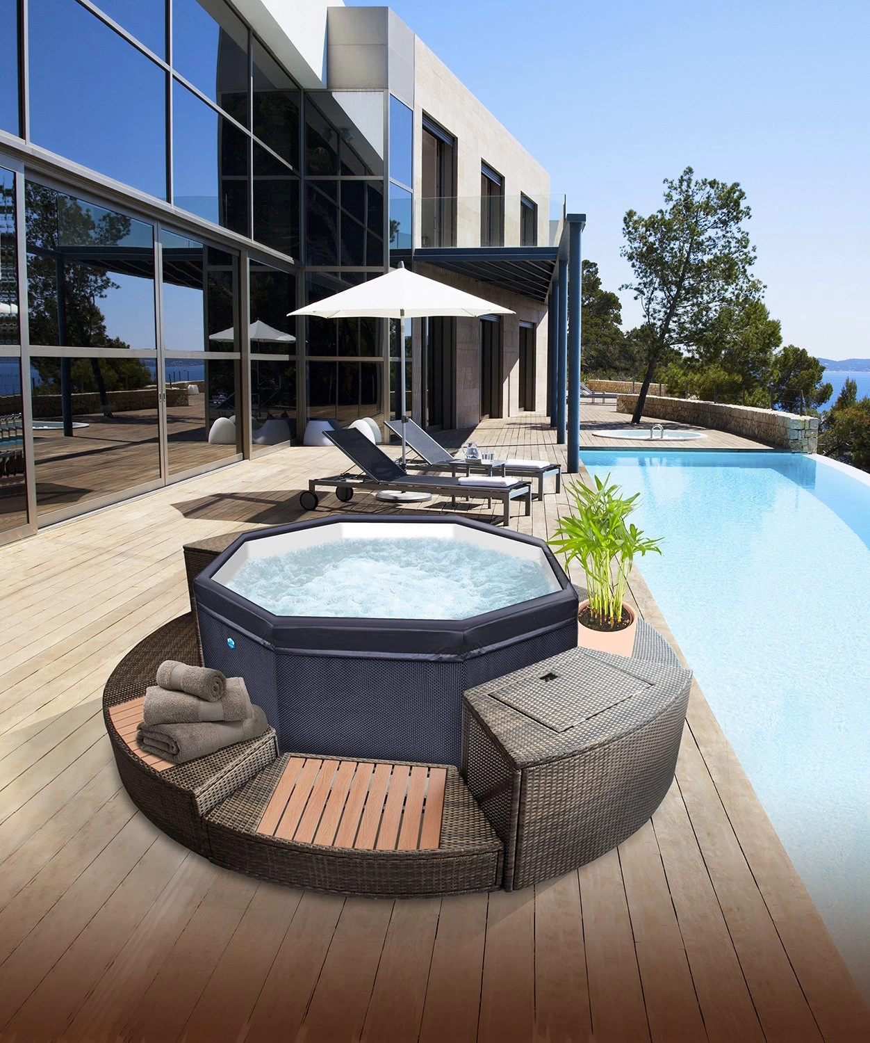 Netspa Spa Octopus 6 personen is een buitengewone spa met isolerende opbouw blokken. Deze Netspa is een variant op onze opblaasbare modellen. Door de handige constructie van de blokken kan je deze spa makkelijk opbouwen of verplaatsen. Een voordeel ten opzichte van een opblaas spa is dat er minder risico is op lekken. En ook nog eens extra stevigheid biedt. Heerlijk ontspannen dus met zijn lucht jets die zelf verticale massage bieden.