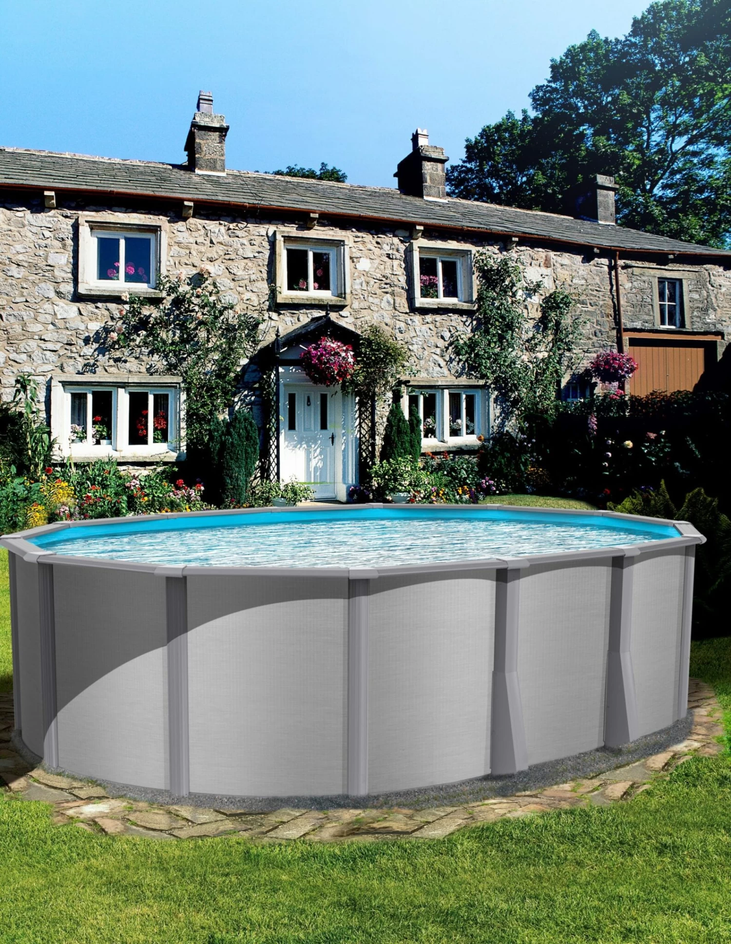 In de meegeleverde zandfilter moet u wel nog filterzand of filterglas voorzien. Het opbouw zwembad kan eventueel ook deels ingegraven worden.