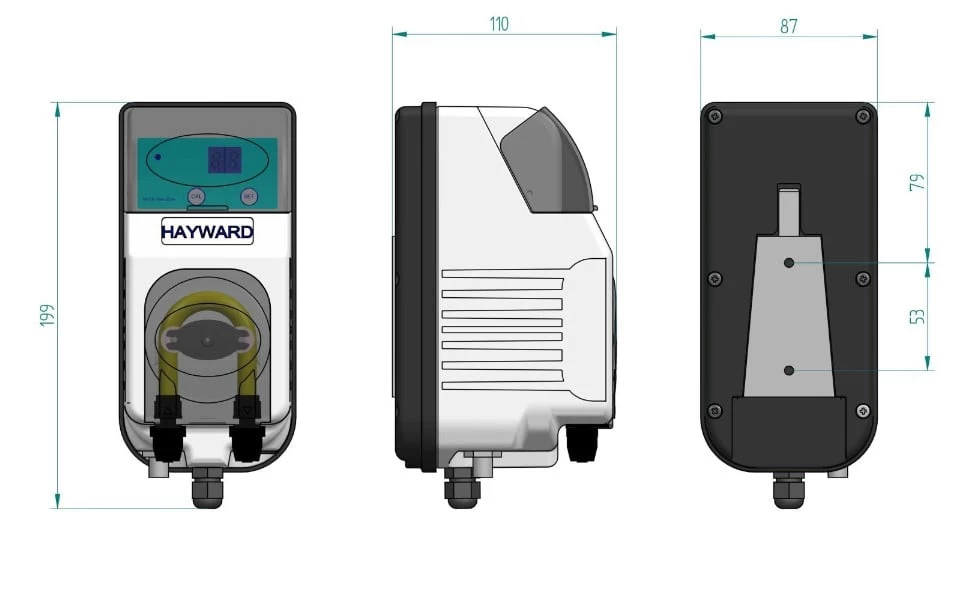 Deze doseerpomp is een laatste ontwikkeling van Hayward en speciaal gemaakt als eenvoudig installatie kitje voor private zwembaden. Het pompje regelt de pH waarde (zuurtegraad) . Aan de hand van een bus AQT vloeibaar pH min kan u zo zonder manuele tussenkomst uw pH waarde van het water regelen. De aflezing is duidelijk op het digitaal scherm. De kwaliteit is beter dan de standaard peristaltische doseerpompjes van Hayward.