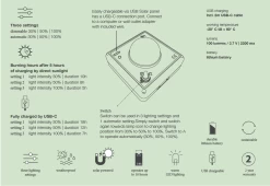 De sfeer lamp werkt met zonne energie. Daarom is deze zonne energie sfeer lamp duurzaam en heel zuinig in verbruik. De bovenkant heeft een kleine zonnepaneel die de batterij van de sfeerlamp oplaadt. Hierdoor is de lamp draagbaar en dus gemakkelijk op te bergen.