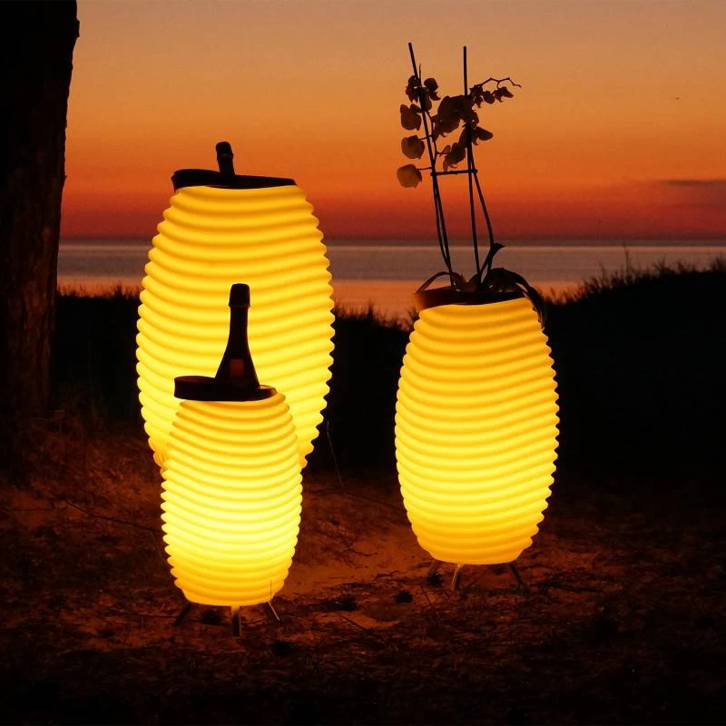 In naam Synergy wijnkoeler verwijst naar de multifunctionele eigenschappen als sfeerlamp, ijsemmer / champagne koeler en als bluetooth speaker. Hierdoor kan je genieten met vrienden of familie aan het zwembad of in het poolhouse van een heerlijk fris drankje, een prachtig design sfeerlicht en een streepje muziek.