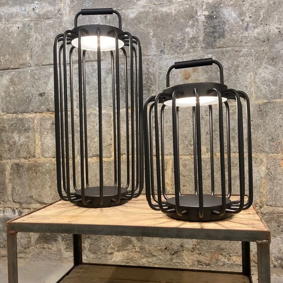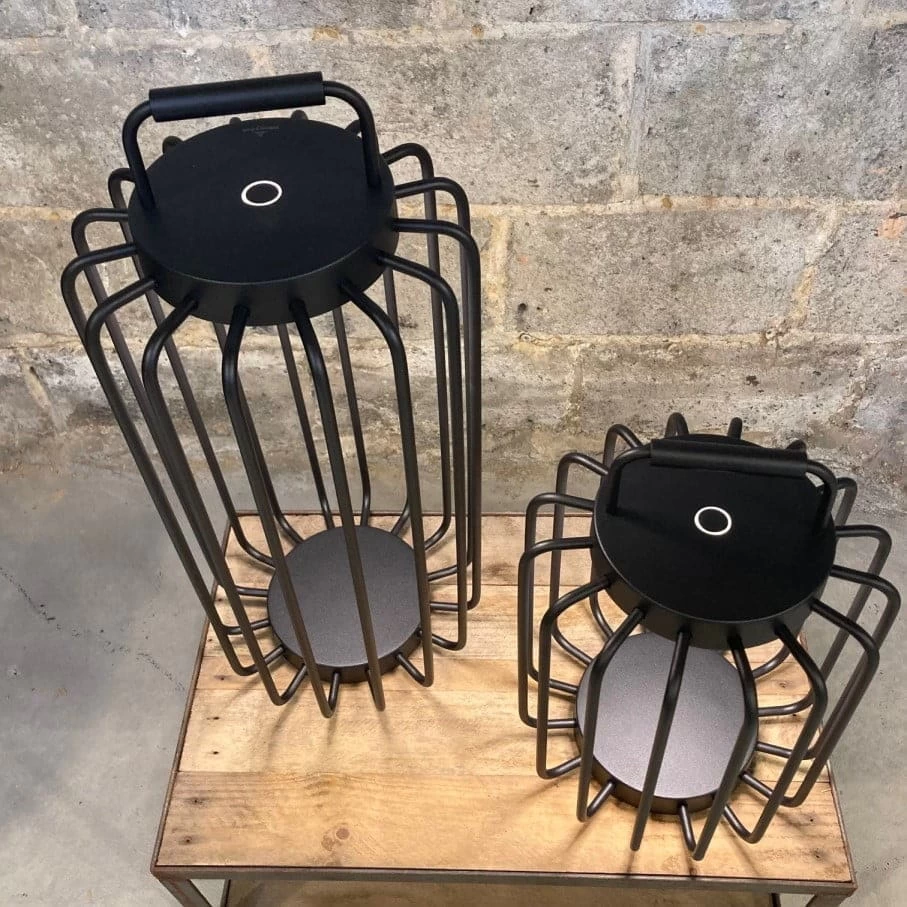 - Draadloze en oplaadbare sfeerlamp voor in de tuin vervaardigd uit zwart gelakt aluminium. Het laadstation is meegeleverd (niet waterdicht, dus binnen opladen)