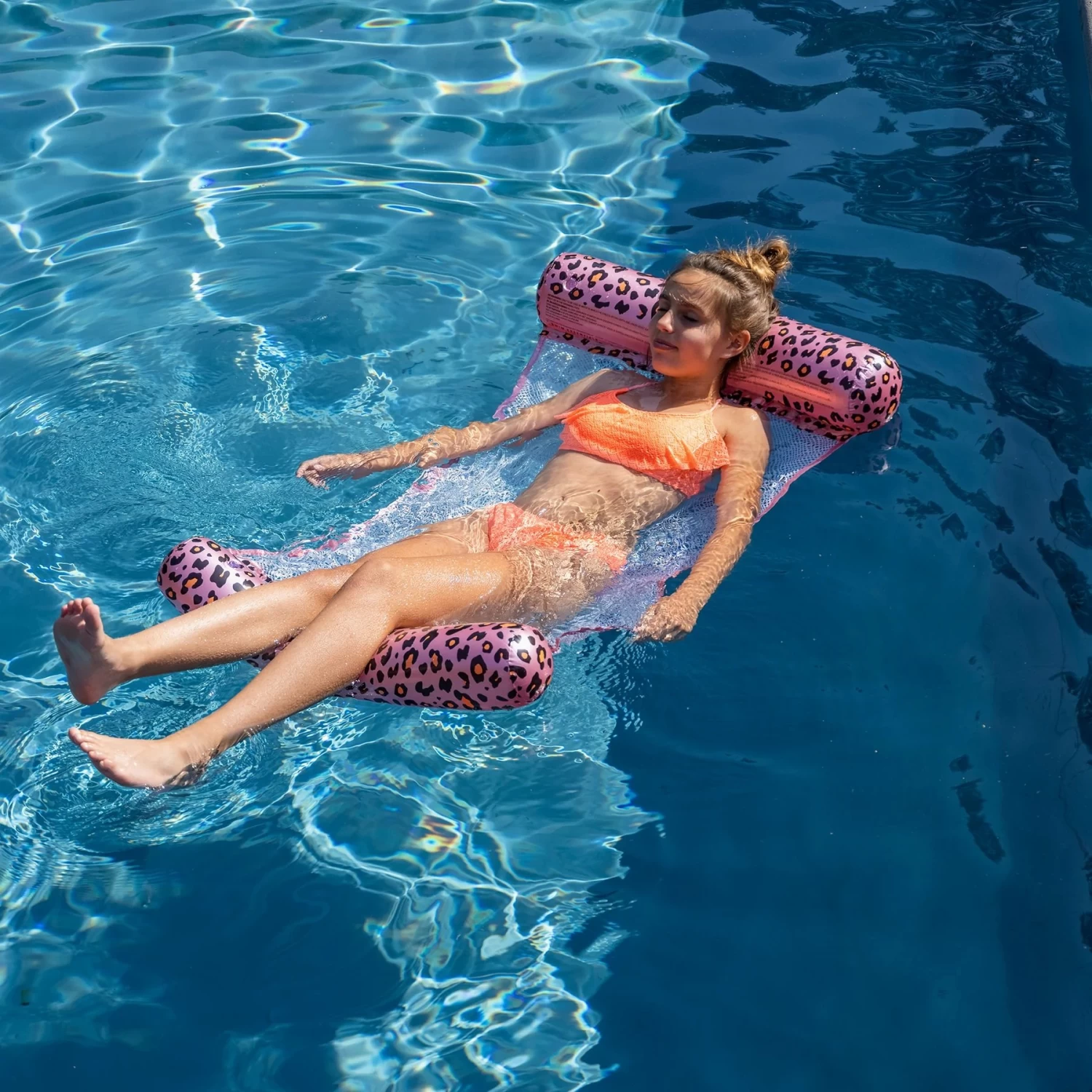 Waterhangmat roze panter geschikt voor kids vanaf 6 jaar en maximaal 60kg. Leuke panter print en fel roze kleur. Ideaal om te zonnebaden en toch tegelijkertijd verfrissing te zoeken in het zwembad