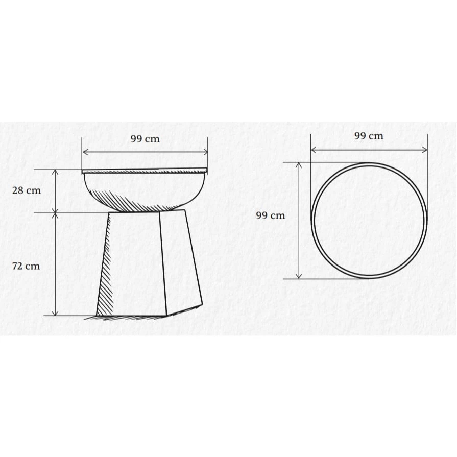 - hoogte : 1 meter (voet is 72cm hoog en vuurschaal gedeelte is 28cm hoog)
