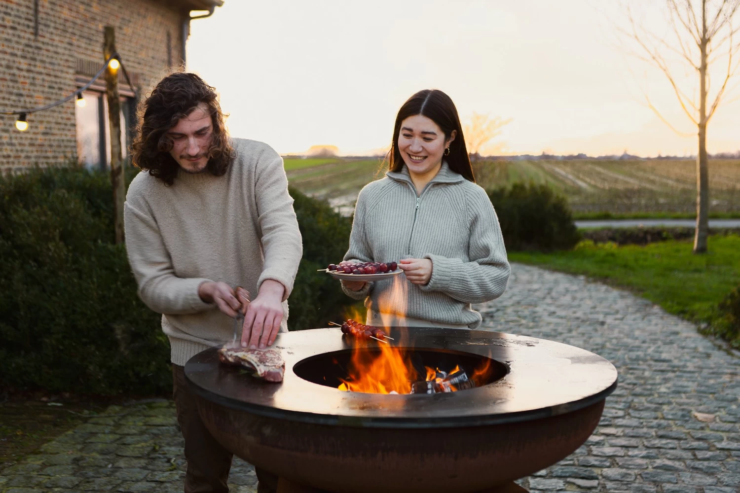 Met deze barbecue krijgt koken en grillen in de buitenlucht een totaal andere invulling je kan deze vuurschaal BBQ ook als grillplaat gebruiken.