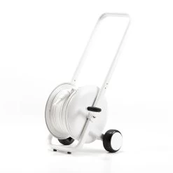 De tuinslang heeft een ideale lengte van 50 meter en stevig design. Daarom is de haspelwagen TASMAN een eenvoudig, stevig en functioneel product met een hertekende lijn die uw tuin en terras heel mooi, modern en aantrekkelijk maken.