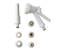De Tasman wordt geleverd met een tuut en een spuitpistool met 5 standen. Op de tuinslang mogen zit 50m tuinslang. Daardoor geraakt u werkelijk in elke hoek van de tuin voor het bewateren. Hij is verkrijgbaar in het wit en in het zwart.